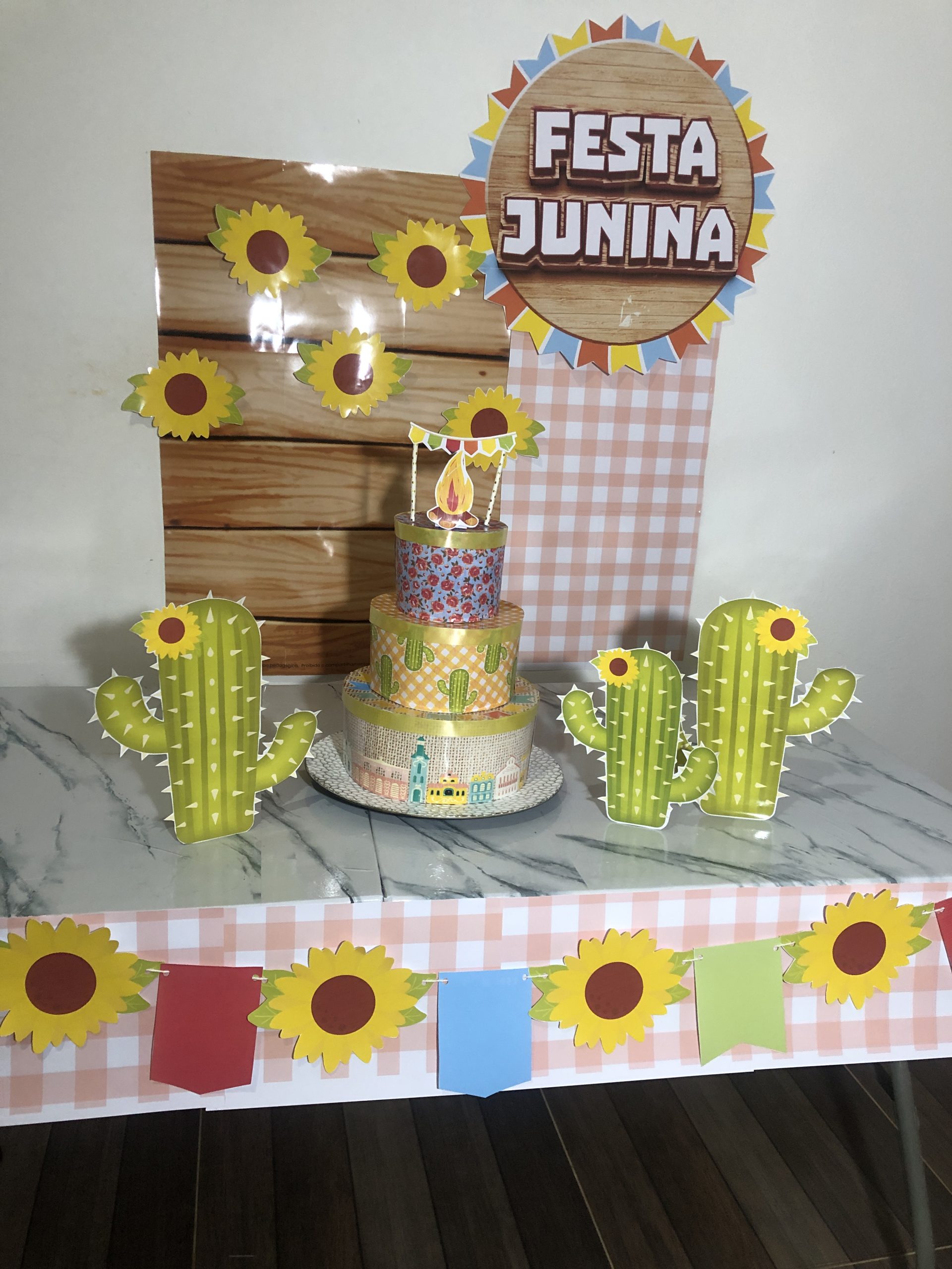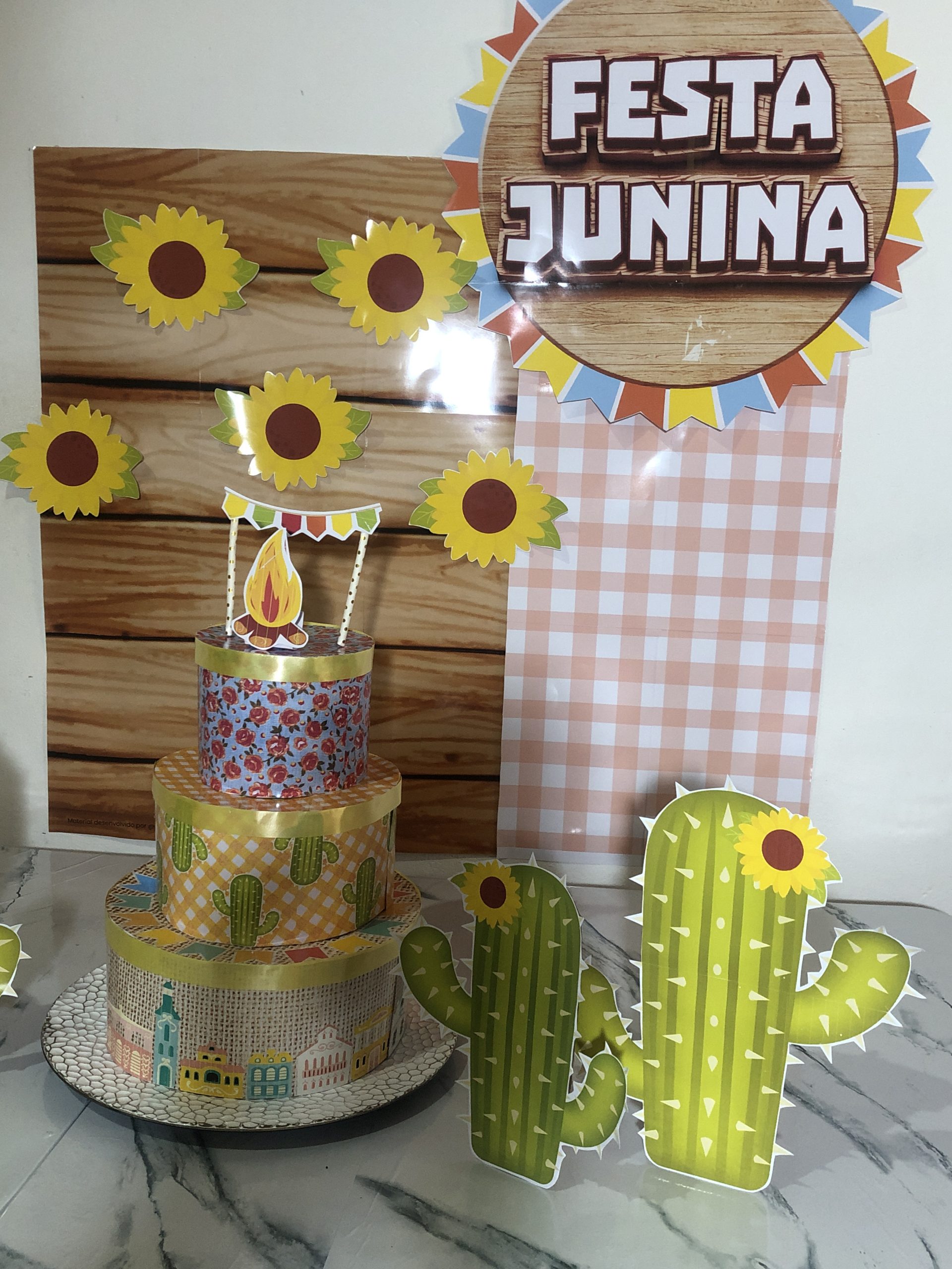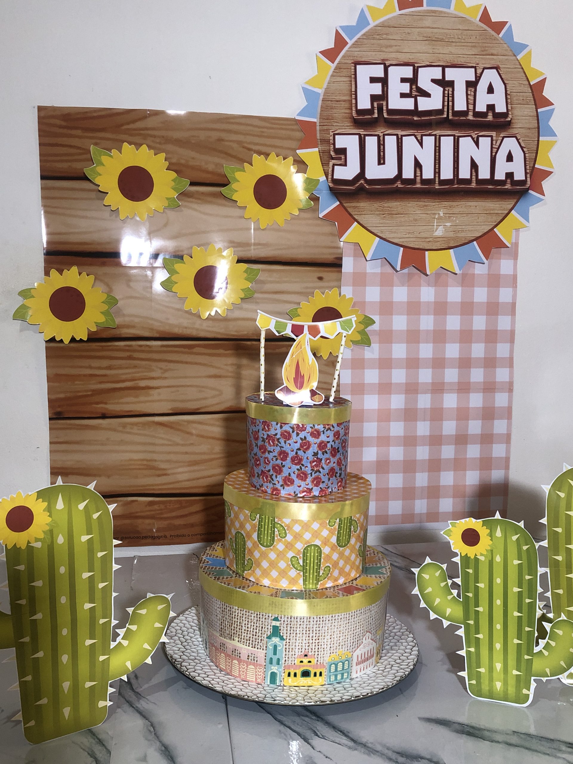 PAINEL E BOLO FAKE FESTA JUNINA