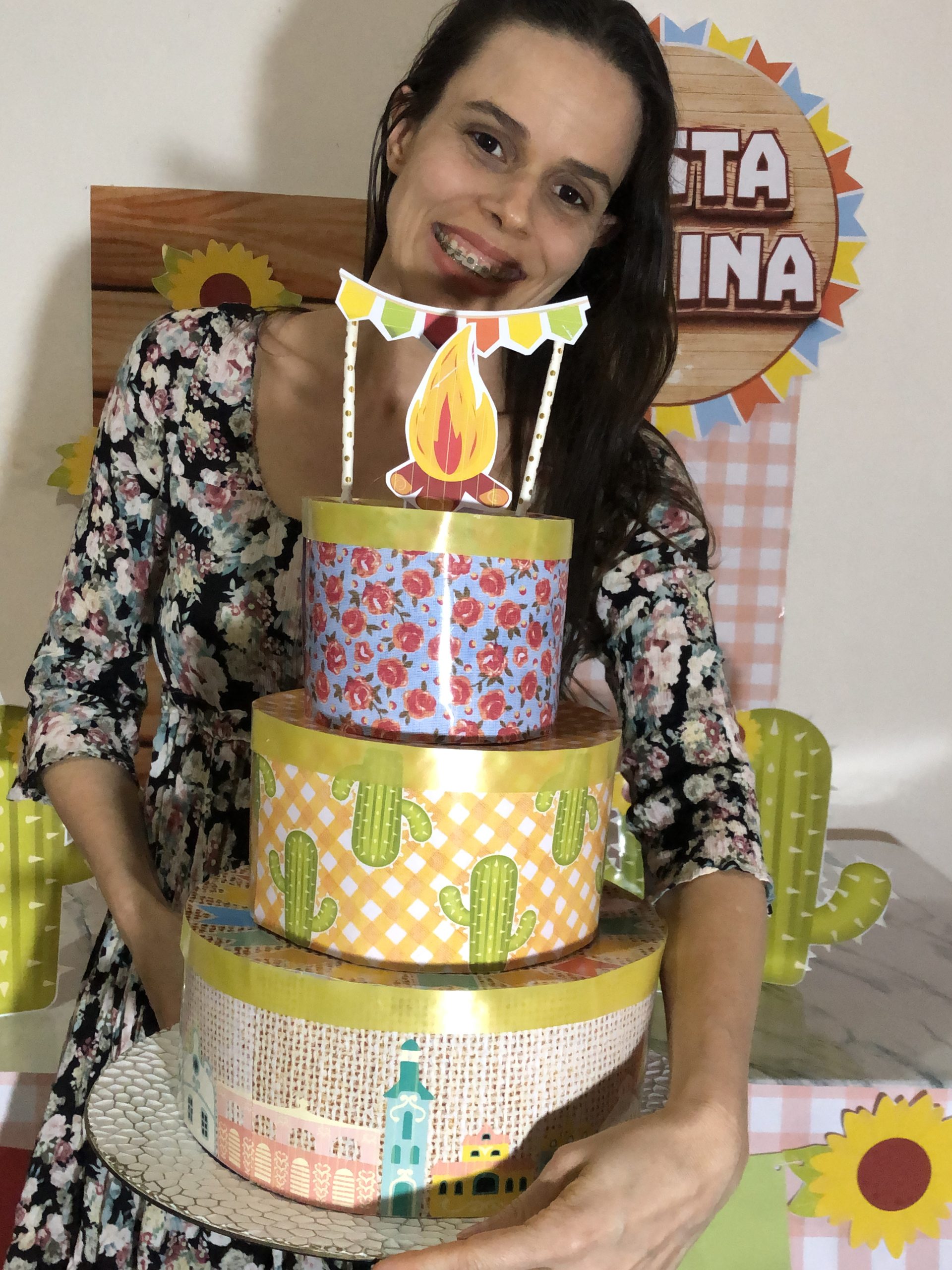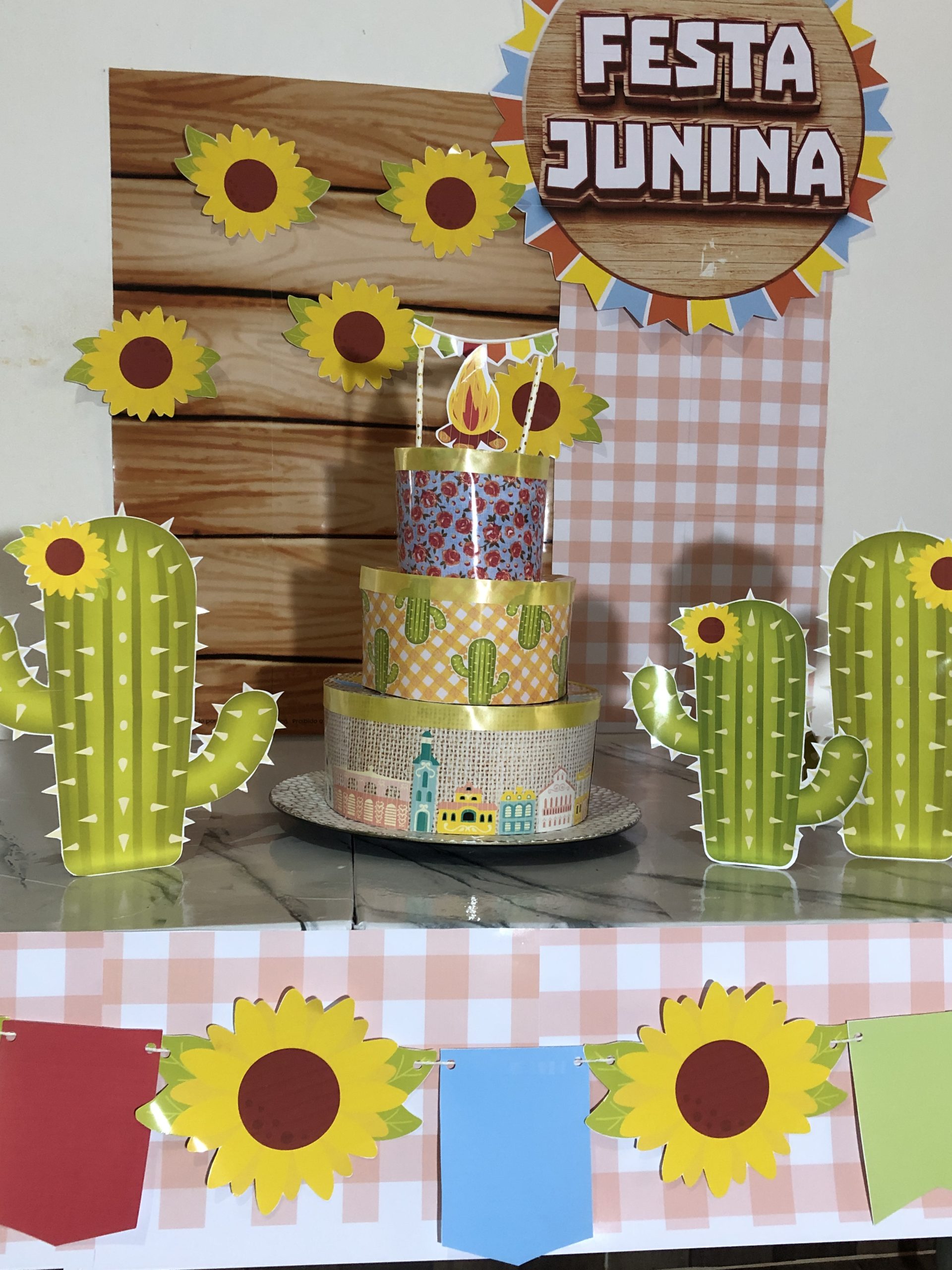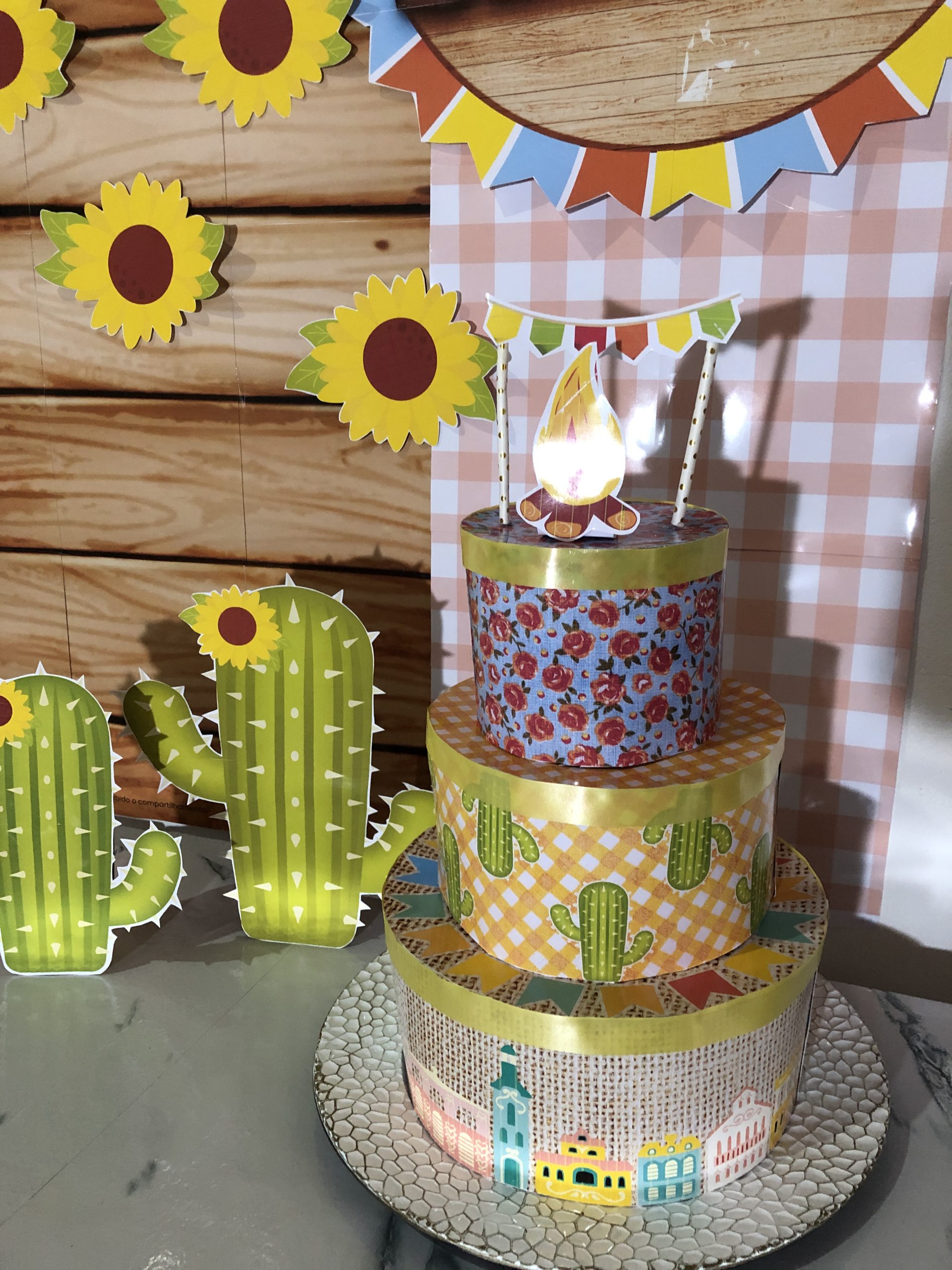 PAINEL E BOLO FAKE FESTA JUNINA