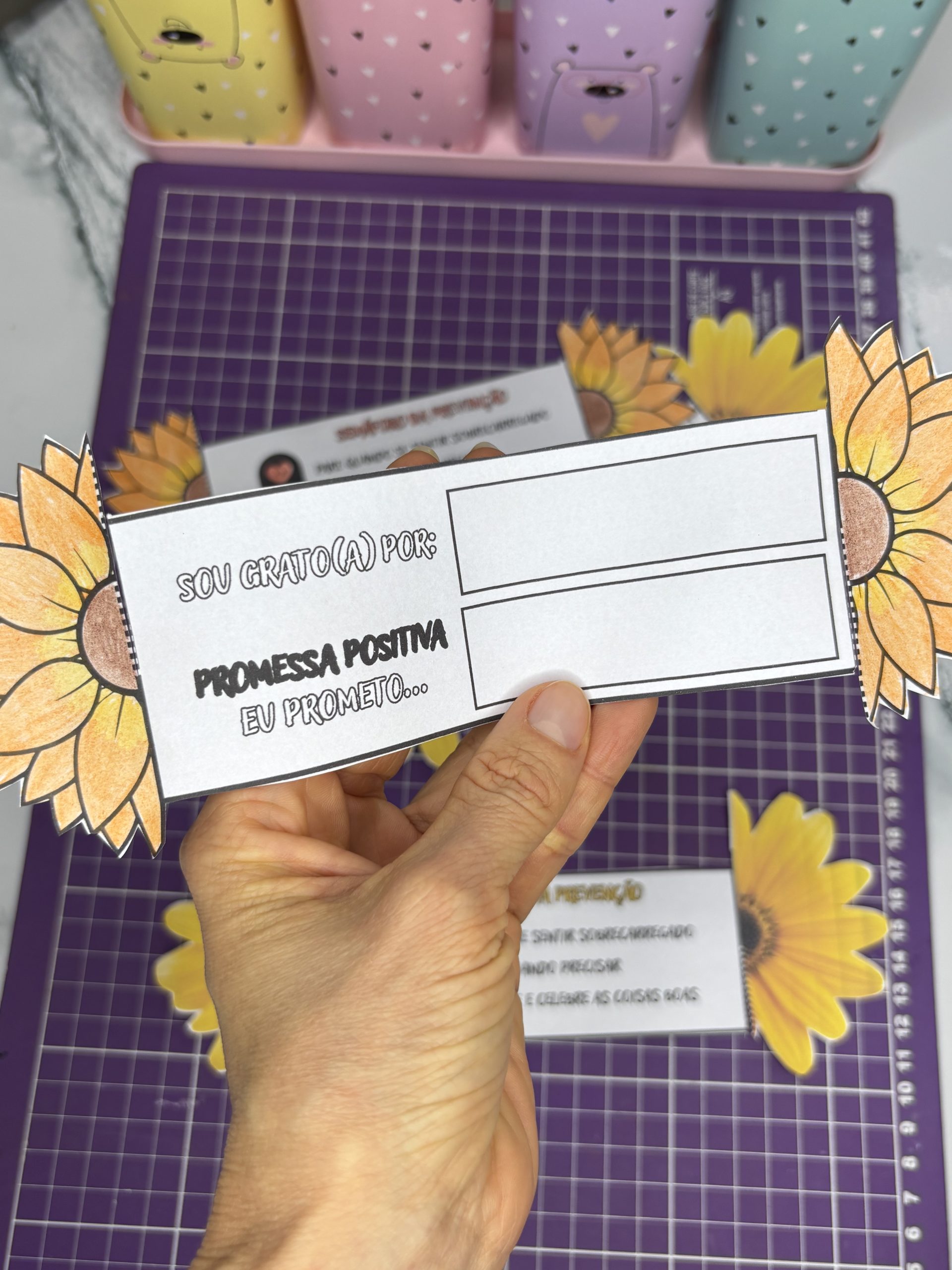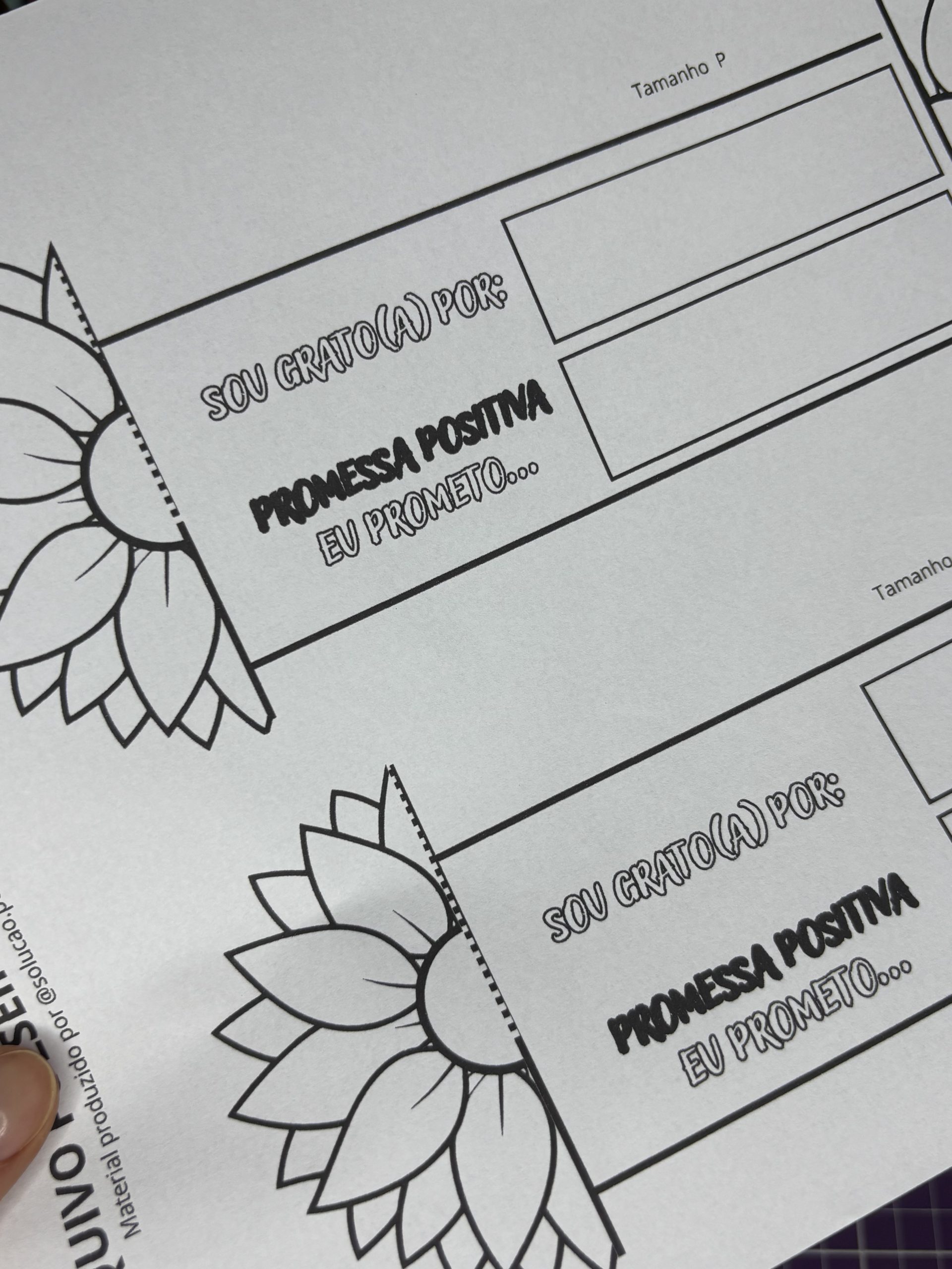 ✨ “Sou grato por… / Eu prometo” – espaço para os alunos escreverem algo pelo qual são gratos e uma promessa positiva de cuidado consigo ou com os outros.